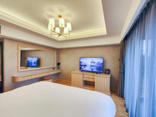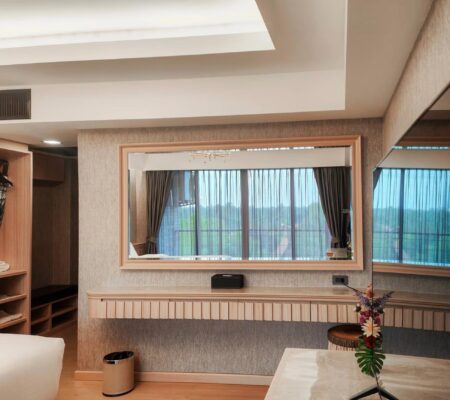 ดำเนินพวา รีสอร์ทบ้านต้นไม้ SUPERIOR BALCONY KING Hotel zone room with a room area of 28 m2 with a 7-foot bed, soft and comfortable bed. The atmosphere in the room is designed for comfort every night. Along with nature that will help you relax and effective rest.