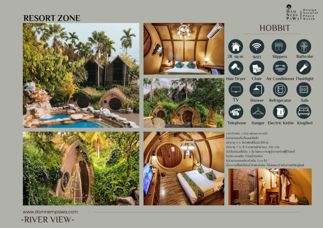 เปิดประสบการณ์ใหม่ในการพักผ่อนกับห้องพักสไตล์ “บ้านฮอบบิท” สุดน่ารัก ดีไซน์โค้งมนที่กลมกลืนไปกับธรรมชาติ ผนังปกคลุมด้วยต้นไม้สีเขียวขจี พื้นที่ภายนอกมีมุมพักผ่อน ให้ได้นั่งชิลล์ รับลมเย็นและเพลิดเพลินกับความร่มรื่นของธรรมชาติรอบตัว เหมาะสำหรับการพักผ่อนพิเศษในวันหยุด
